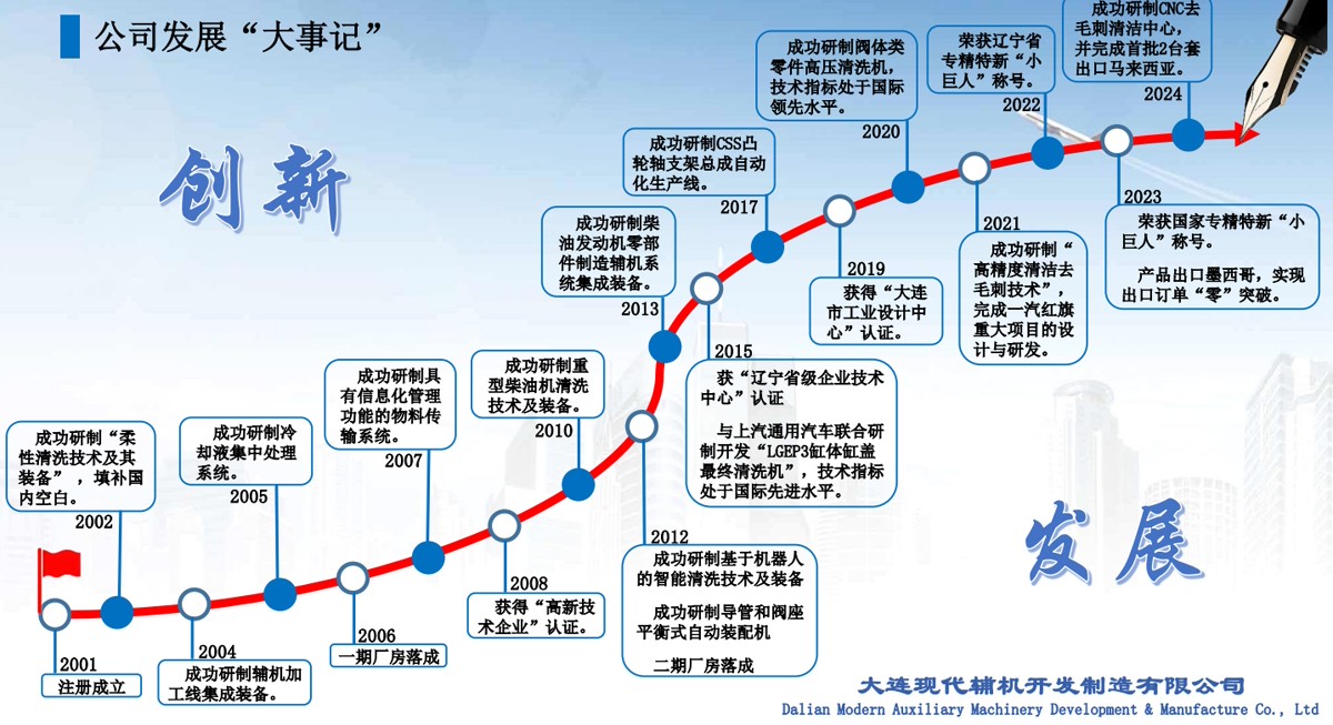 大連現代輔機開發制造有限公司猶如一顆璀璨的明珠,閃耀著創新與發展的光芒。自 2001 年 6 月 18 日成立以來,公司一路披荊斬棘,在技術創新、市場拓展和企業榮譽等方面收獲頗豐,書寫了一段段輝煌篇章。